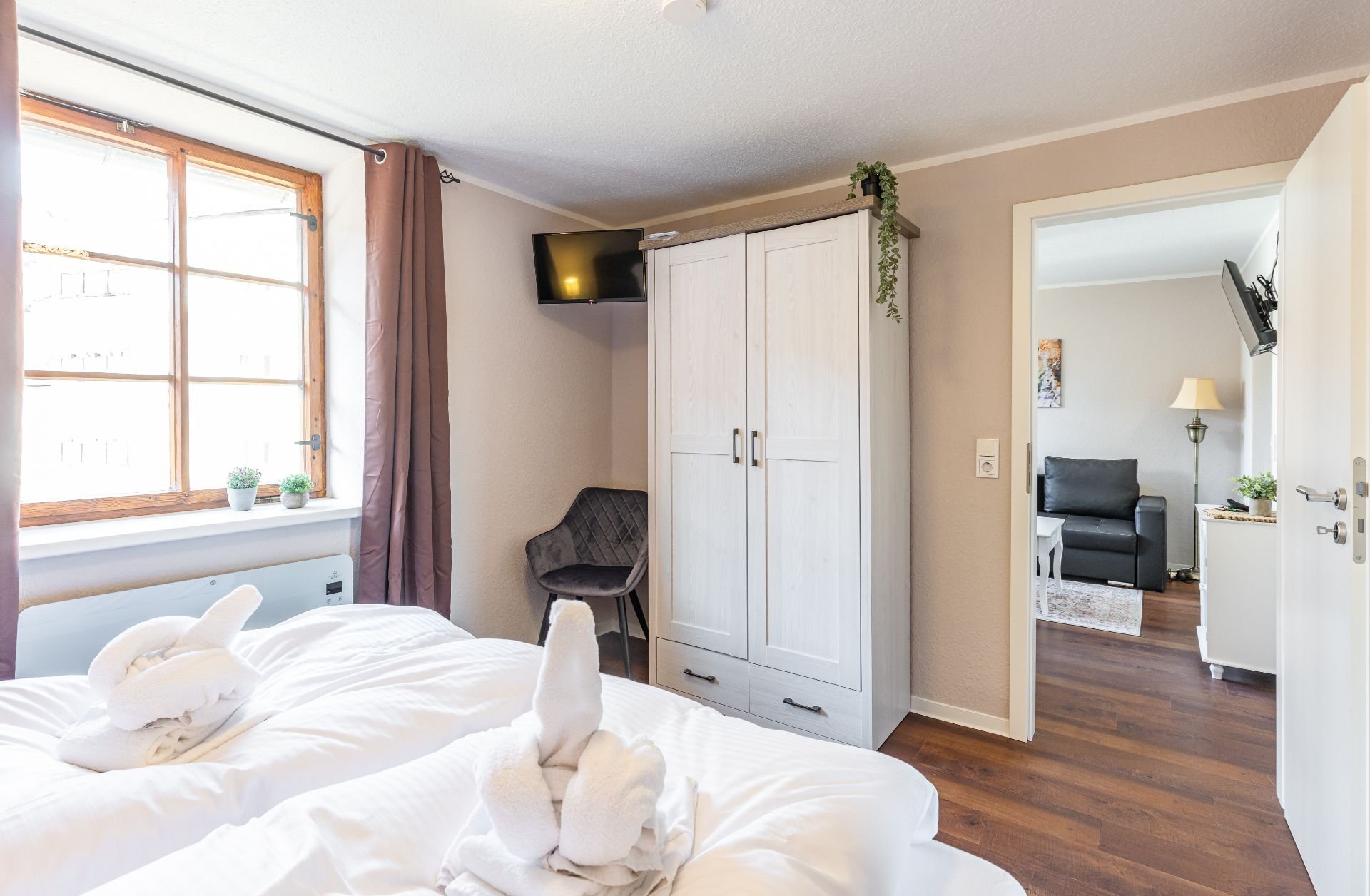Comfortably furnished holiday flat in a lovingly restored half-timbered house near the market square. The flat is located on the 1st floor of the house, which can accommodate 4 guests.